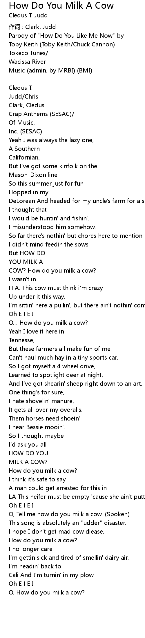 | Song | How Do You Milk A Cow |