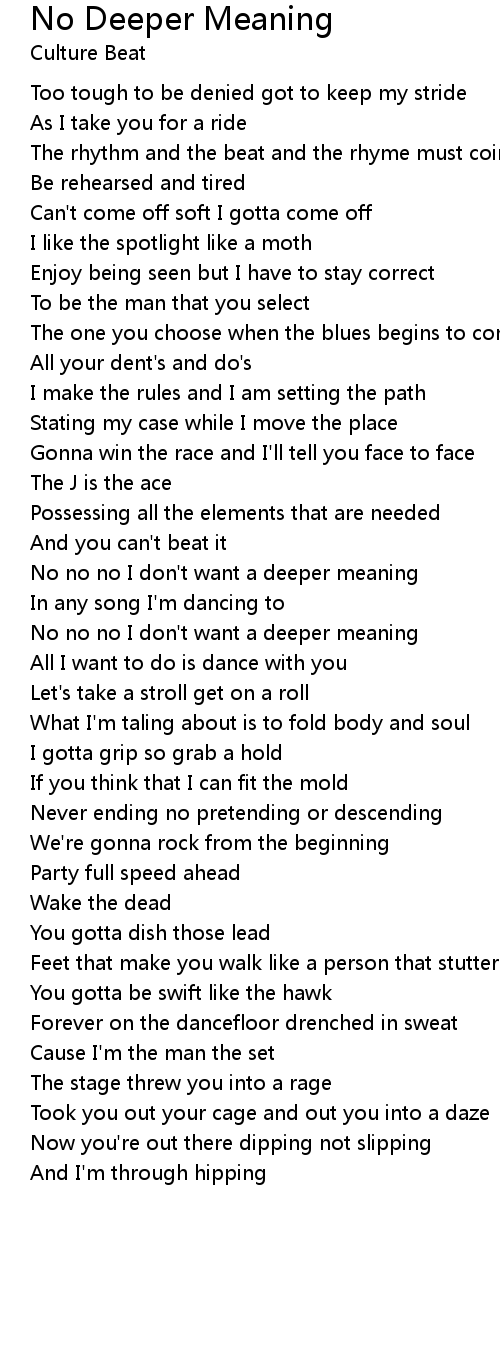 No no no I don't want a deeper meaning |