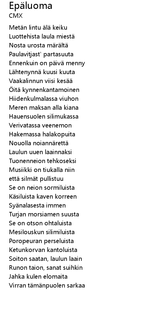 | Song | Epäluoma |