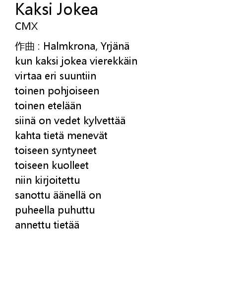 | kun kaksi jokea vierekk in | |