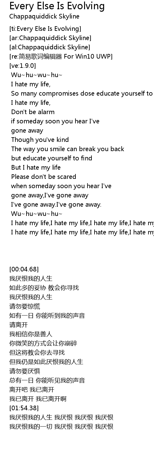 | [02:56.08] | I hate my life, I hate my life, I hate my life, I hate my life, |