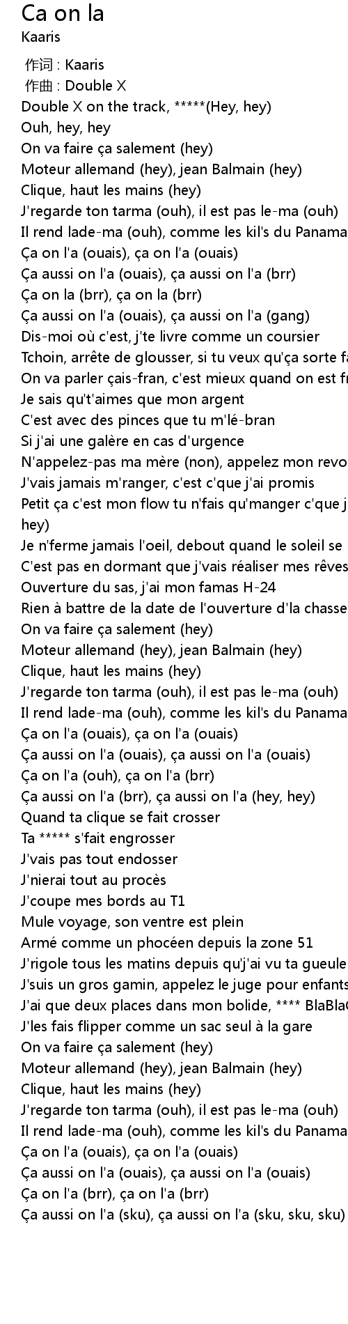 | [02:22.71] | Il rend lade-ma (ouh), comme les kil's du Panama (ouh) |