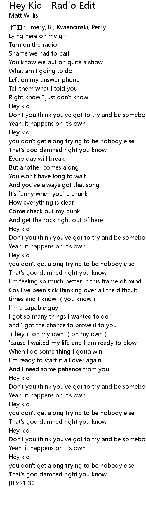 | [00:00.00] | 作曲 : Emery, K., Kwiencinski, Perry ... |