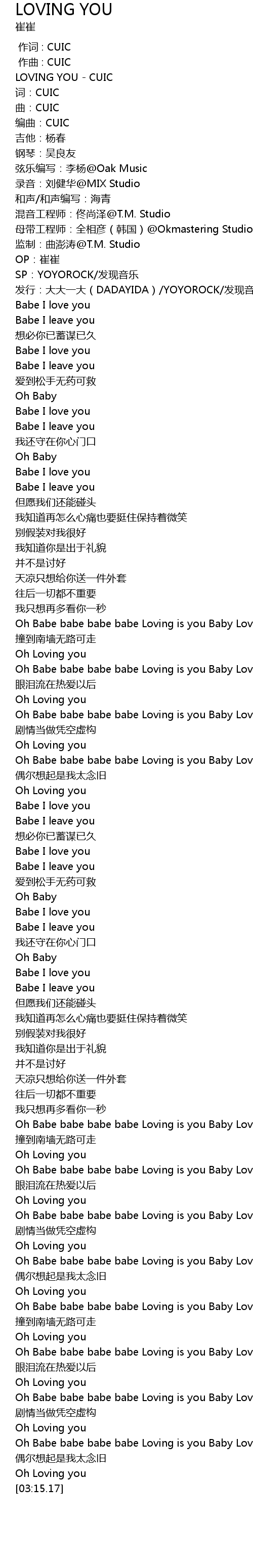 | [00:00.00] | LOVING YOU - CUIC |
