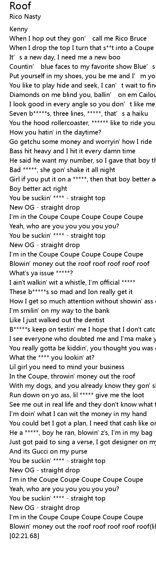 | [00:13.41] | When I drop the top I turn that s**t into a Coupe |