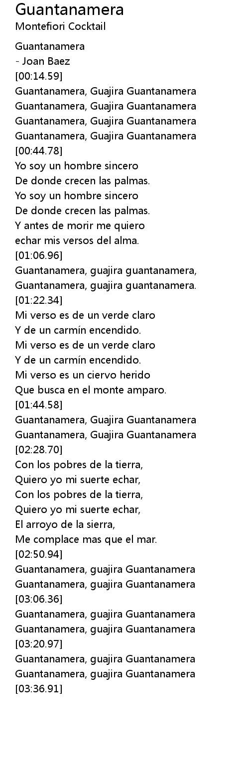 | [02:15.00] | Guantanamera, Guajira Guantanamera |