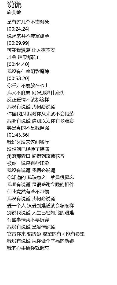 | [01:30.20] | 我哪有说谎 请别以为你有多难忘 |