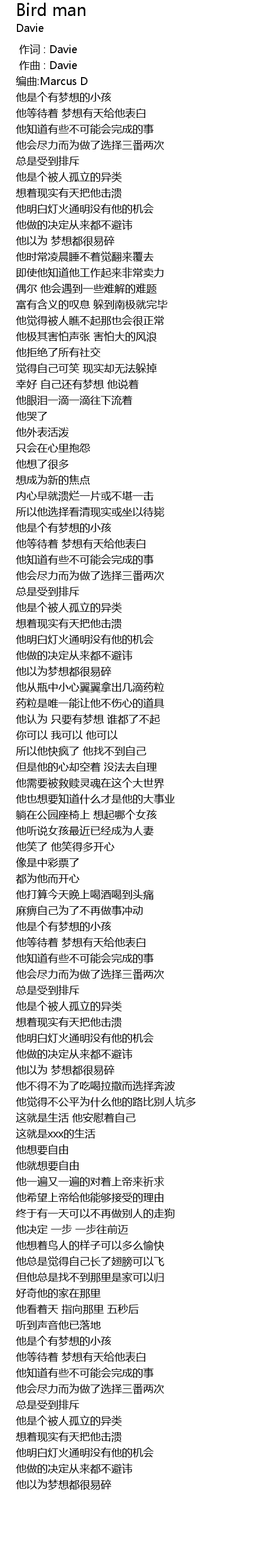 | [03:07.684] | 他总是觉得自己长了翅膀可以飞 |