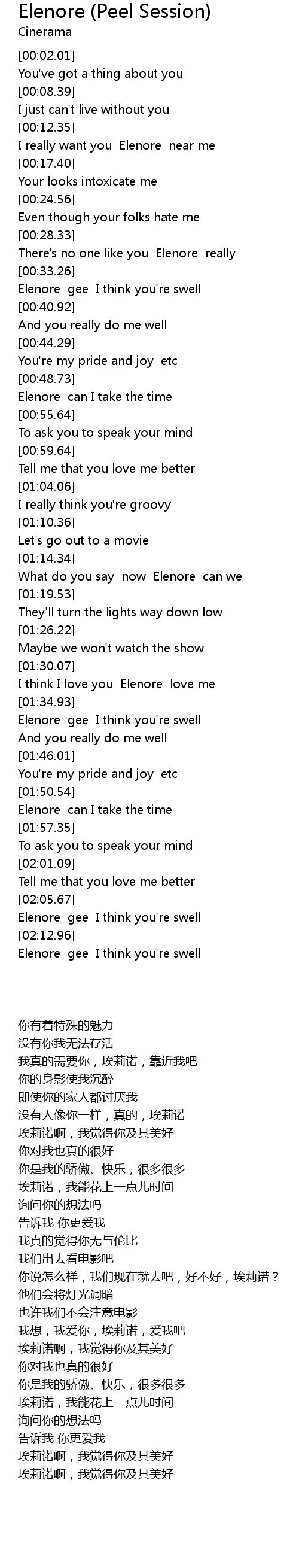 I think I love you Elenore love me |