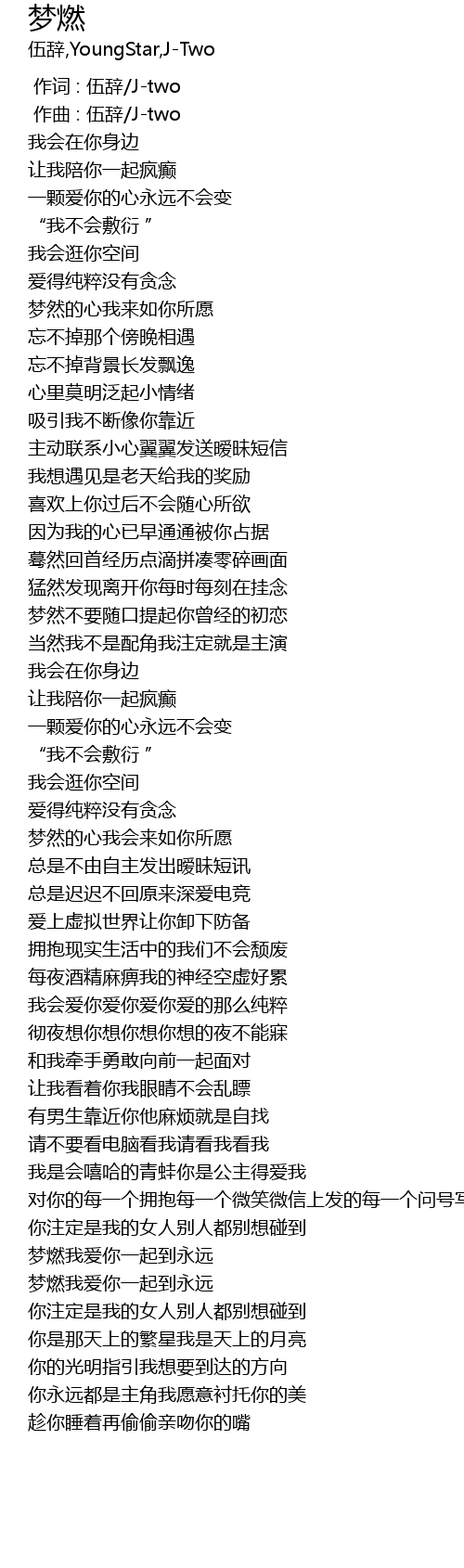 | [00:00.000] | 作词 : 伍辞/J-two |
