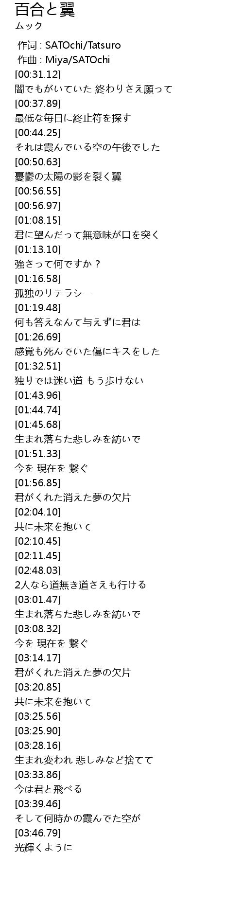 | [00:00.000] | 作词 : SATOchi/Tatsuro |