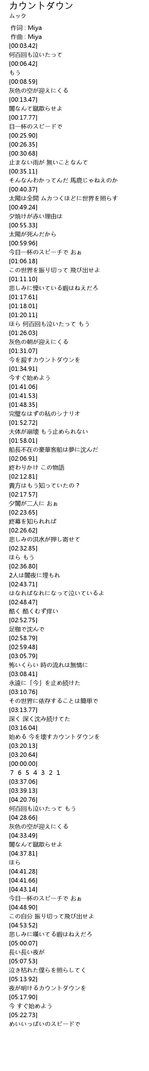 | [05:14.45] | 夜が明けるカウントダウンを |