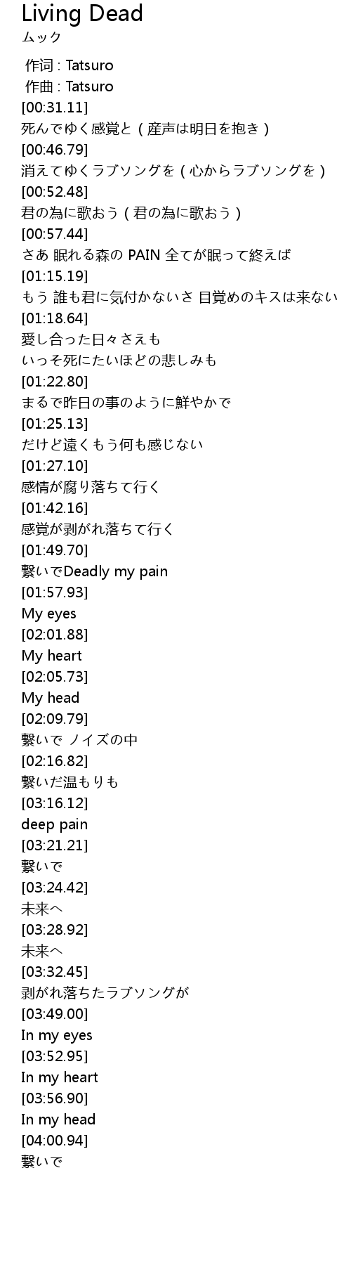 | [00:38.81] | 死んでゆく感覚と(産声は明日を抱き) |