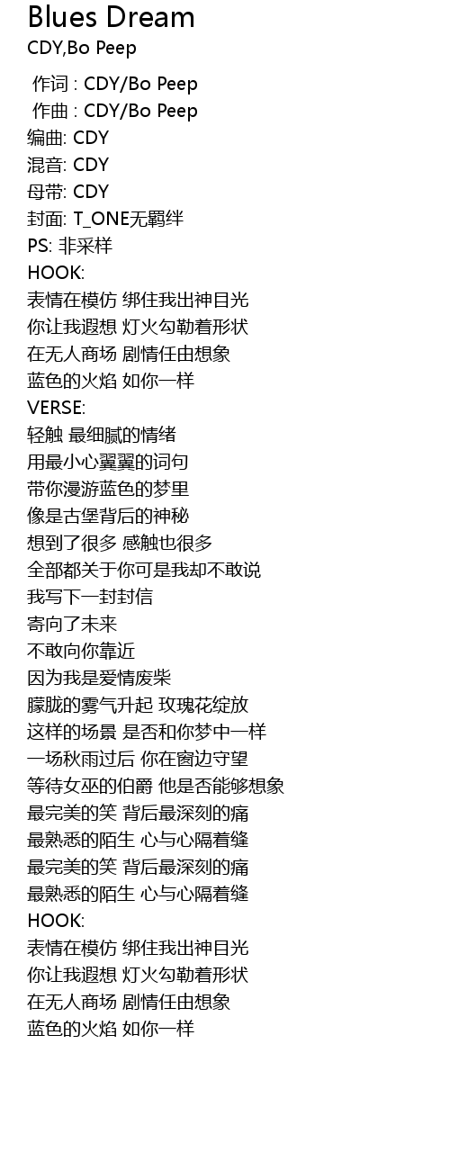 | [00:00.000] | 作词 : CDY/Bo Peep |