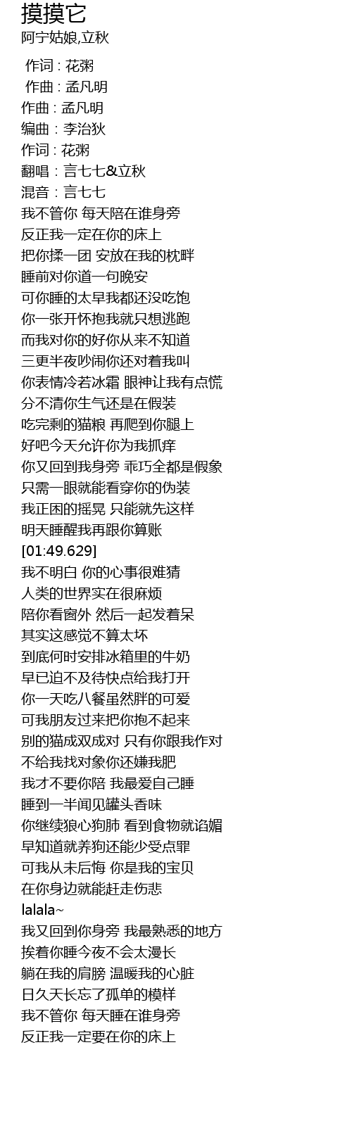 | [02:33.703] | 别的猫成双成对 只有你跟我作对 |