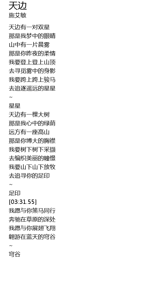 | [04:03.03] | 我愿与你展翅飞翔 |