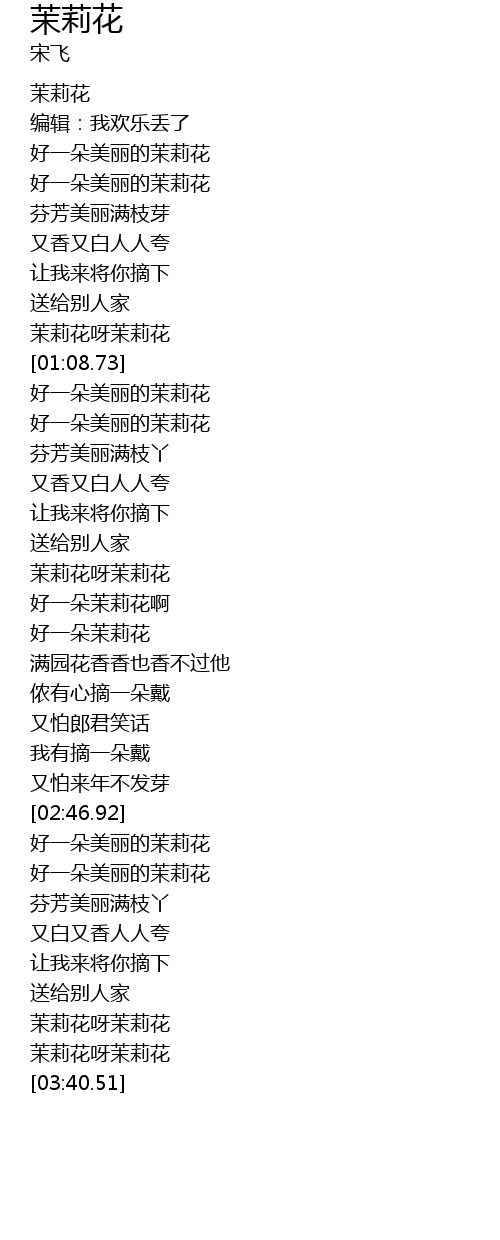 | [03:23.13] | 茉莉花呀茉莉花 |