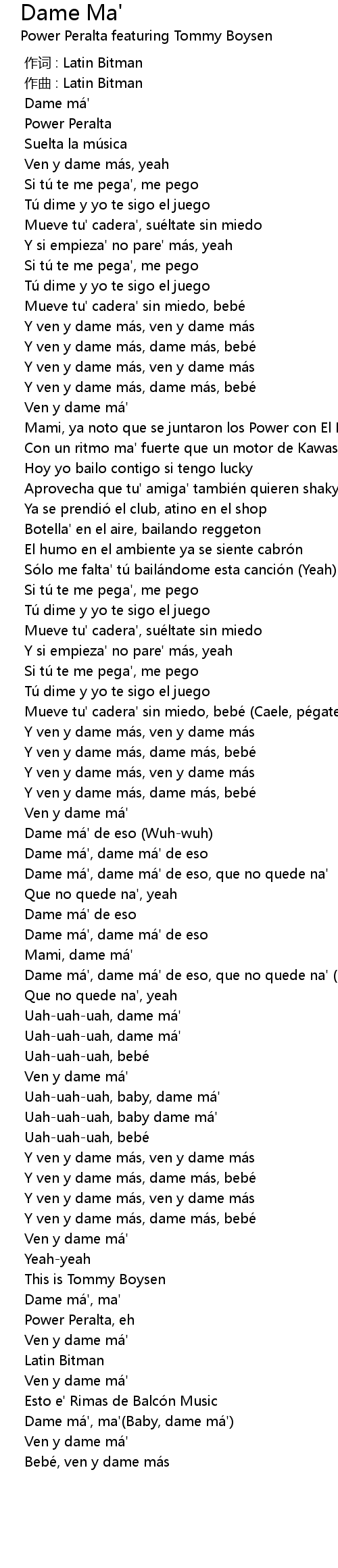 | [03:02.752] | Dame má', ma'(Baby, dame má') |