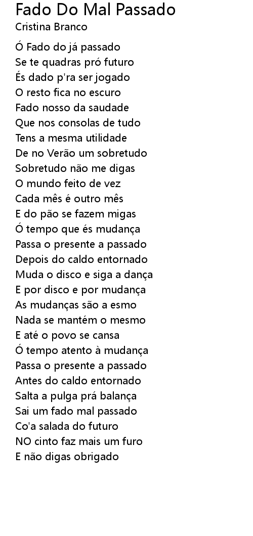 | Song | Fado Do Mal Passado |