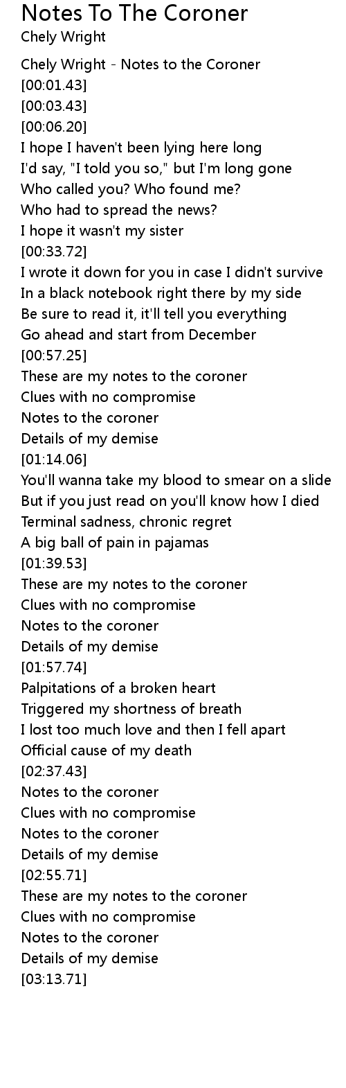 Notes to the coroner |
