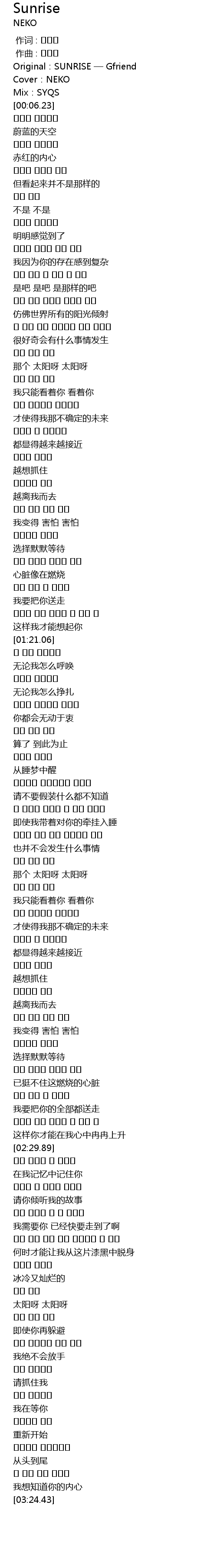 | [00:01.55] | Original:SUNRISE — Gfriend |