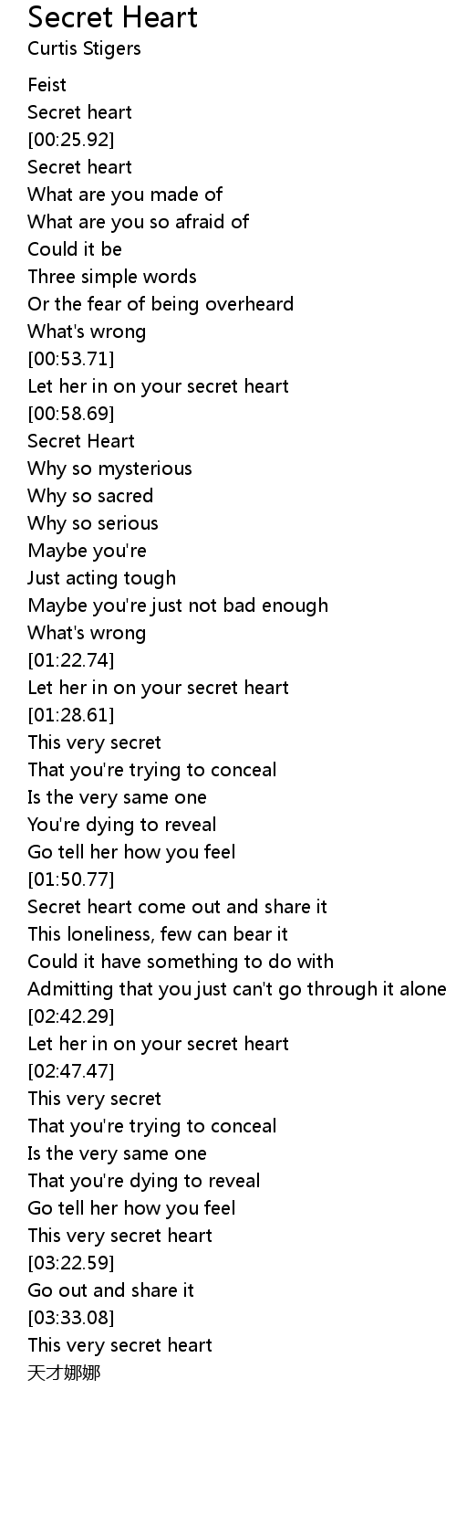 | [02:22.75] | Secret heart come out and share it |