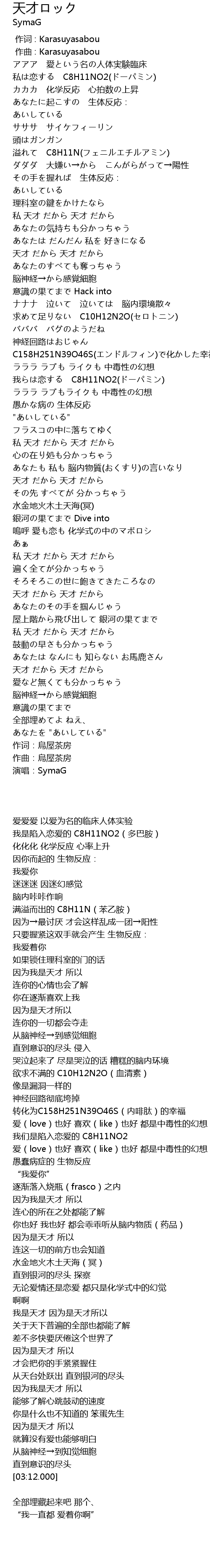 | [01:23.490] | 我らは恋する C8H11NO2(ドーパミン) |