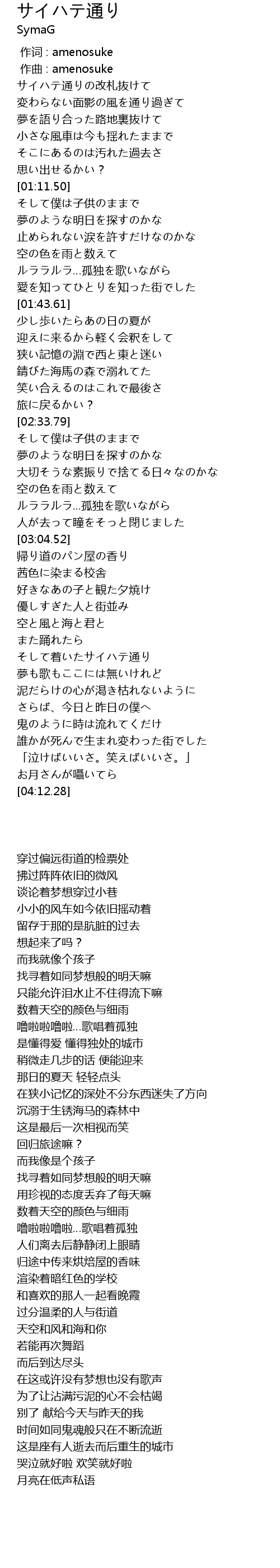 | [00:30.04] | サイハテ通りの改札抜けて |
