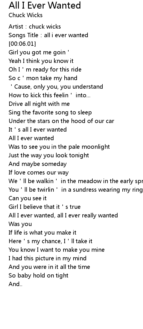 | [00:03.20] | Songs Title:all i ever wanted |