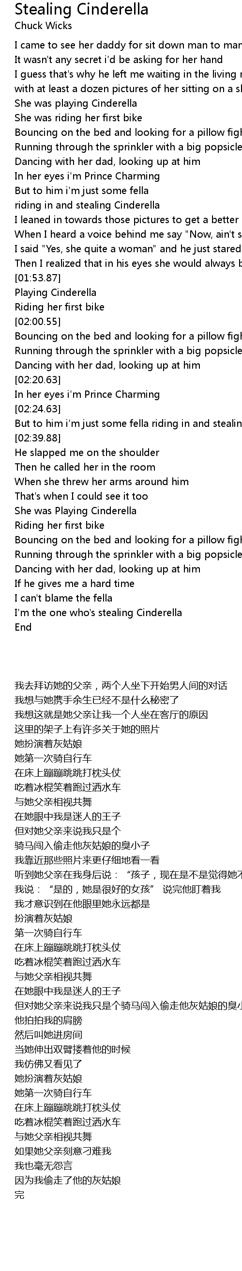 But to him i'm just some fella riding in and stealing Cinderella |