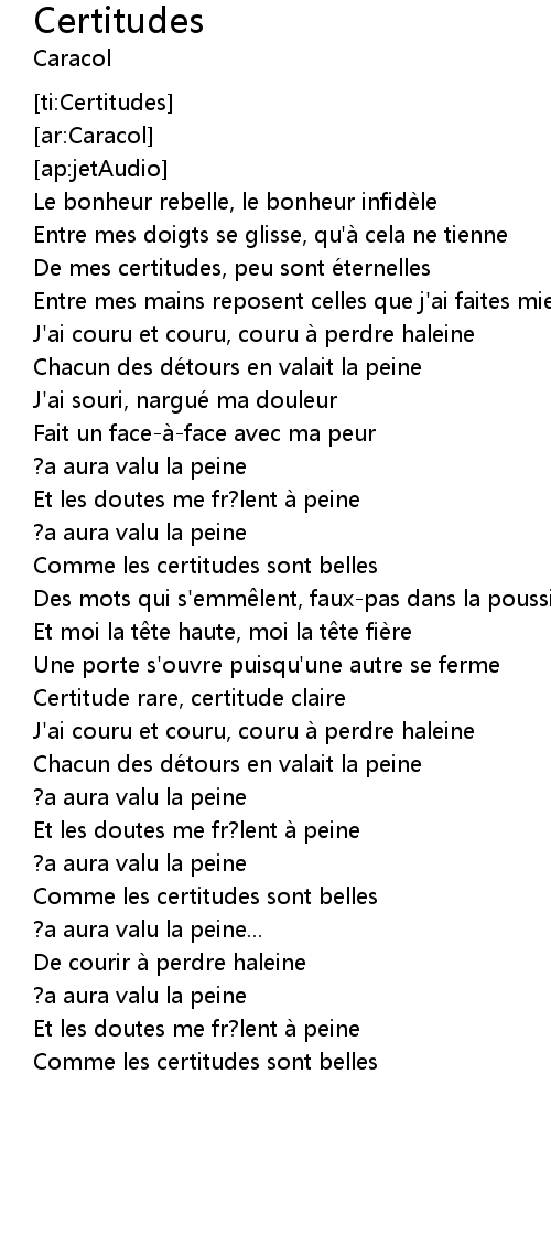 | [00:24:650] | De mes certitudes, peu sont e ternelles |