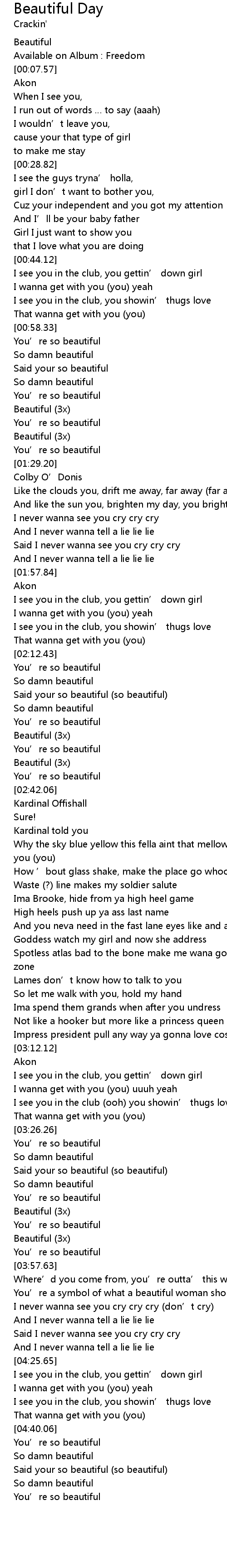 | [03:43.41] | Beautiful (3x) |