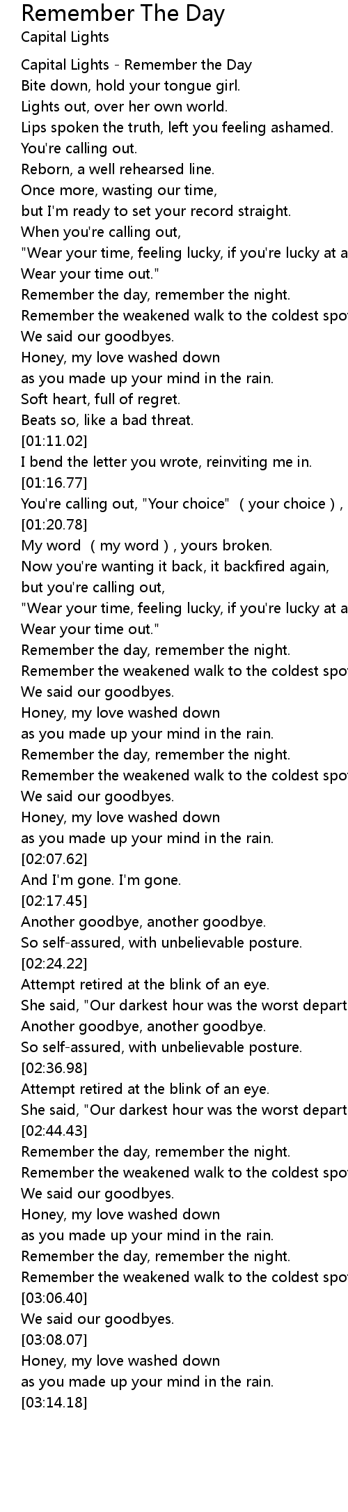 | [00:00.42] | Capital Lights Remember the Day |