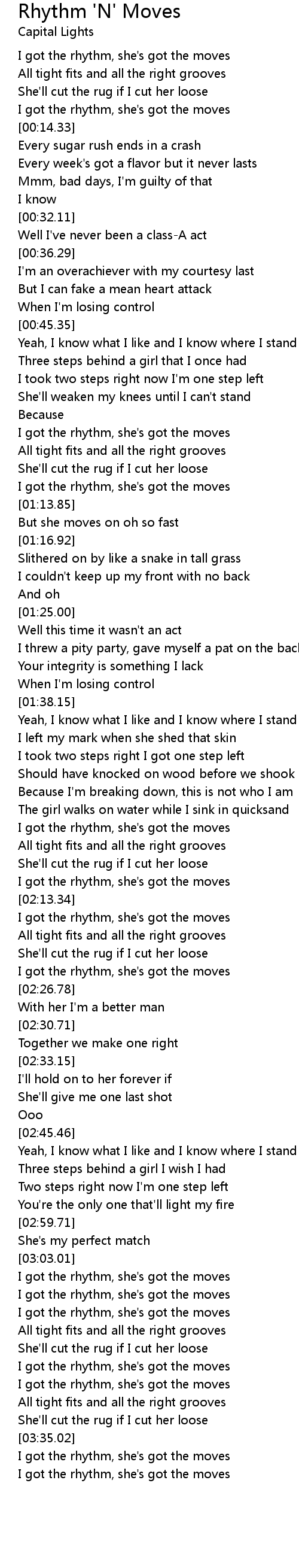 I got the rhythm, she's got the moves |