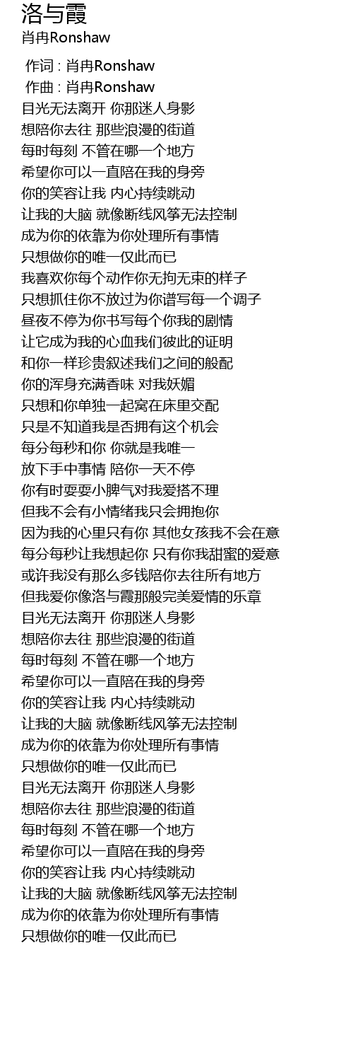 | [00:00.000] | 作词 : 肖冉Ronshaw |