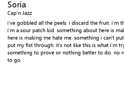 | i've gobbled all the peels. i discard the fruit. i'm the only one left here and i'm a sour patch kid. something about here is making me hate me. something about here is making me hate me. something i can't put my finger on. something i can't put my fist through. it's not like this is what i'm trying to do. it's not something to prove or nothing better to do. no reason to stay is a good reason to go. |