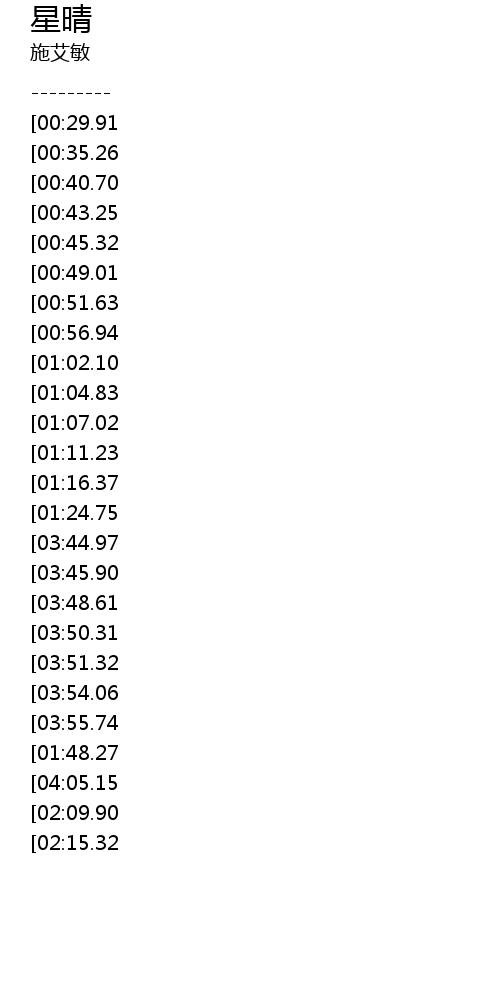 | [04:11.91][03:50.31][01:59.88][01:38.26] | 看星星 |
