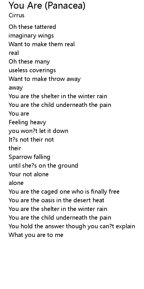 | You are the shelter in the winter rain | |