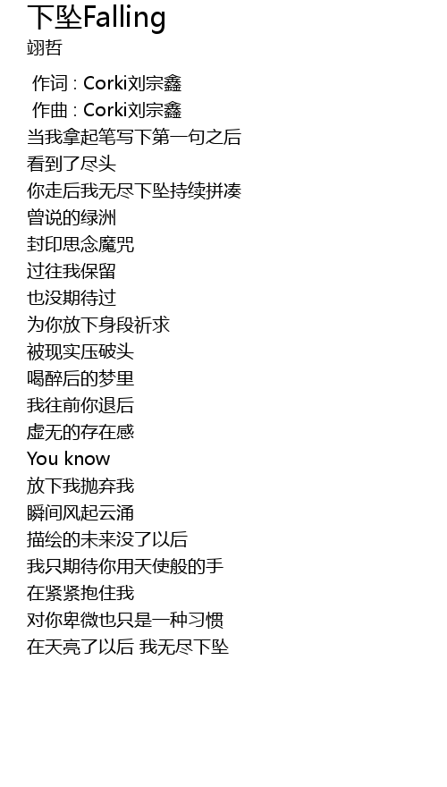 | [00:00.000] | 作词 : Corki刘宗鑫 |