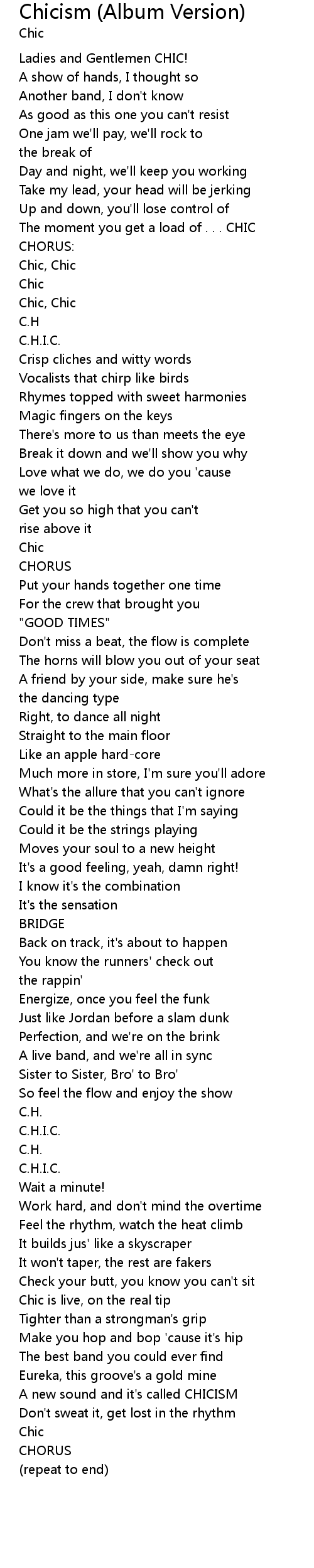 | Chic is live, on the real tip | |