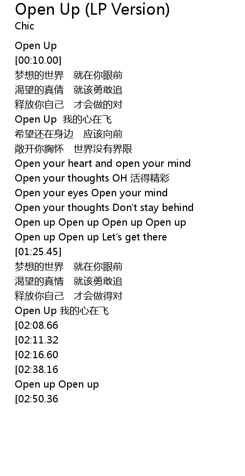 | [01:14.44] | Open up Open up Open up Open up |