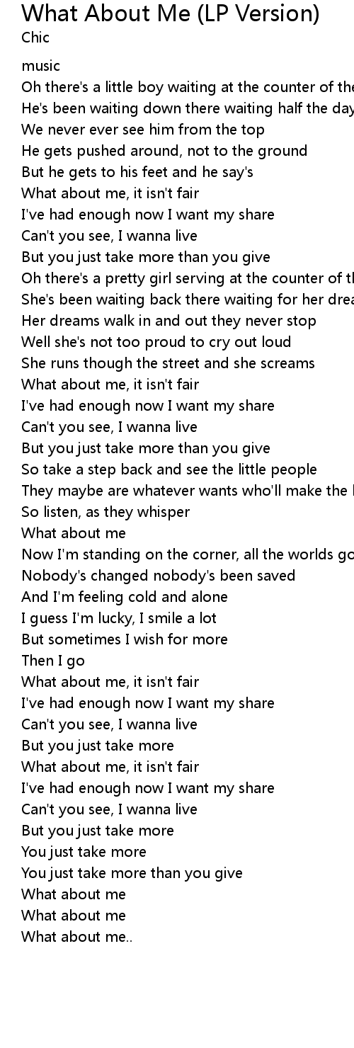 | [00:34.49] | What about me, it isn't fair |