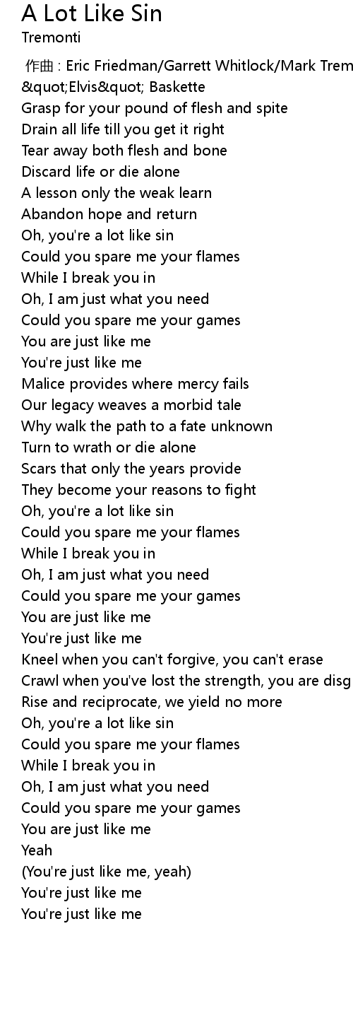 | [00:47.71] | Oh, you' re a lot like sin |