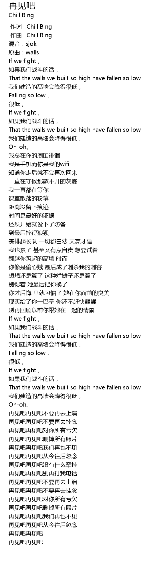| [01:53.631] | zai jian ba zai jian ba wo men zai ye bu jian |