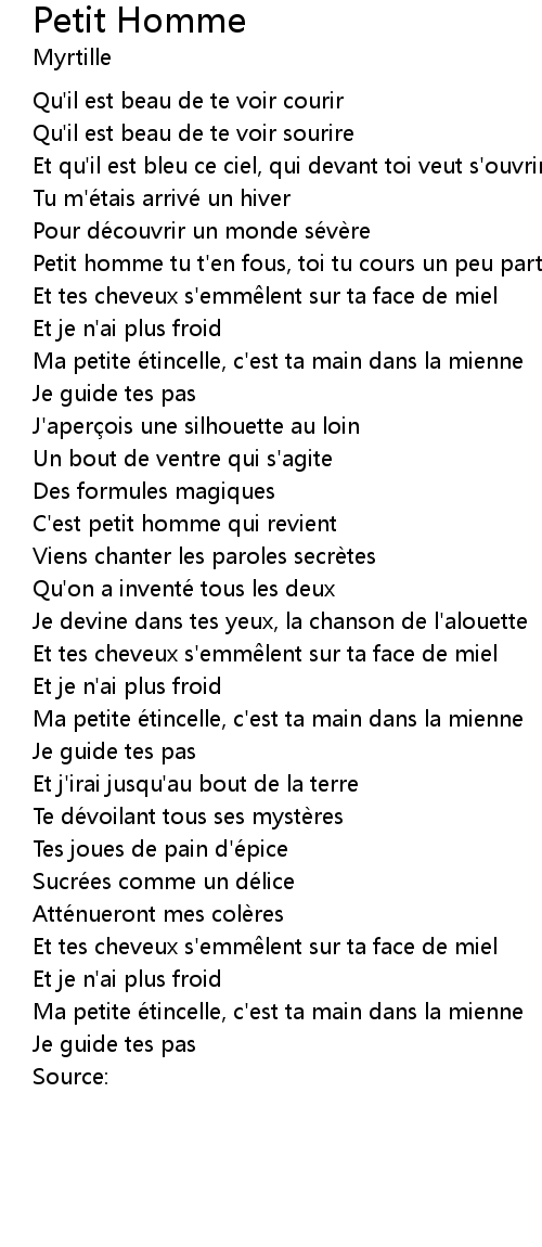 | Petit homme tu t' en fous, toi tu cours un peu partout | |