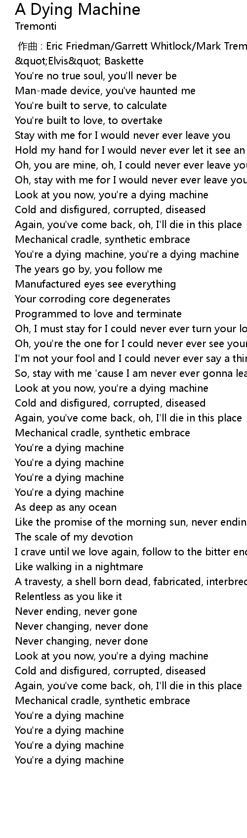 | [01:36.13] | You're a dying machine, you're a dying machine |