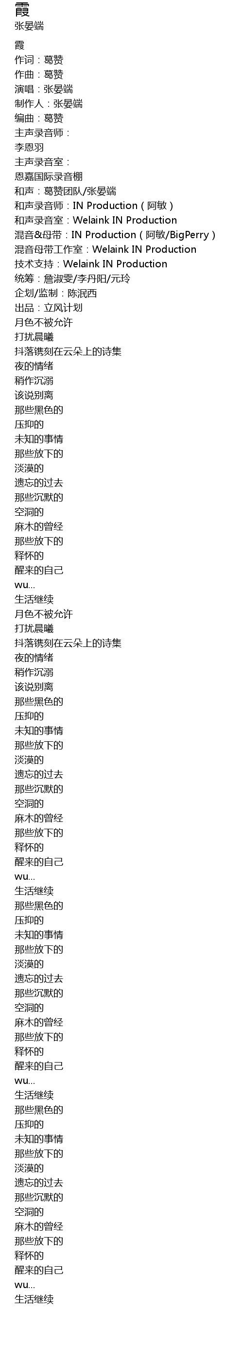 | 和声:葛赞团队/张晏端 | |