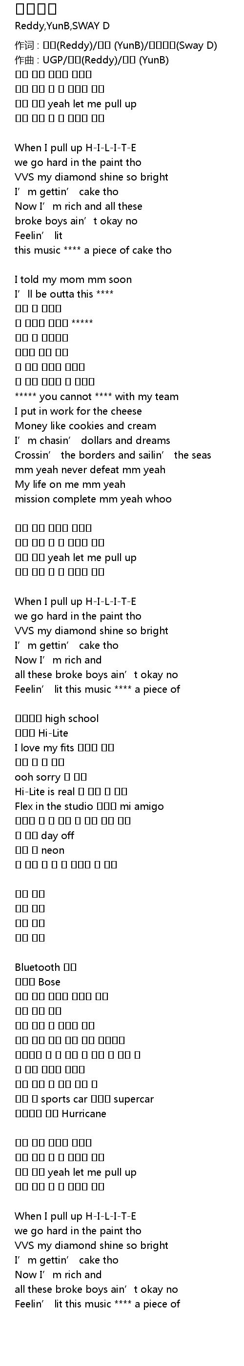 | 作词 : 레디(Reddy)/윤비 (YunB)/스웨이디(Sway D) | |