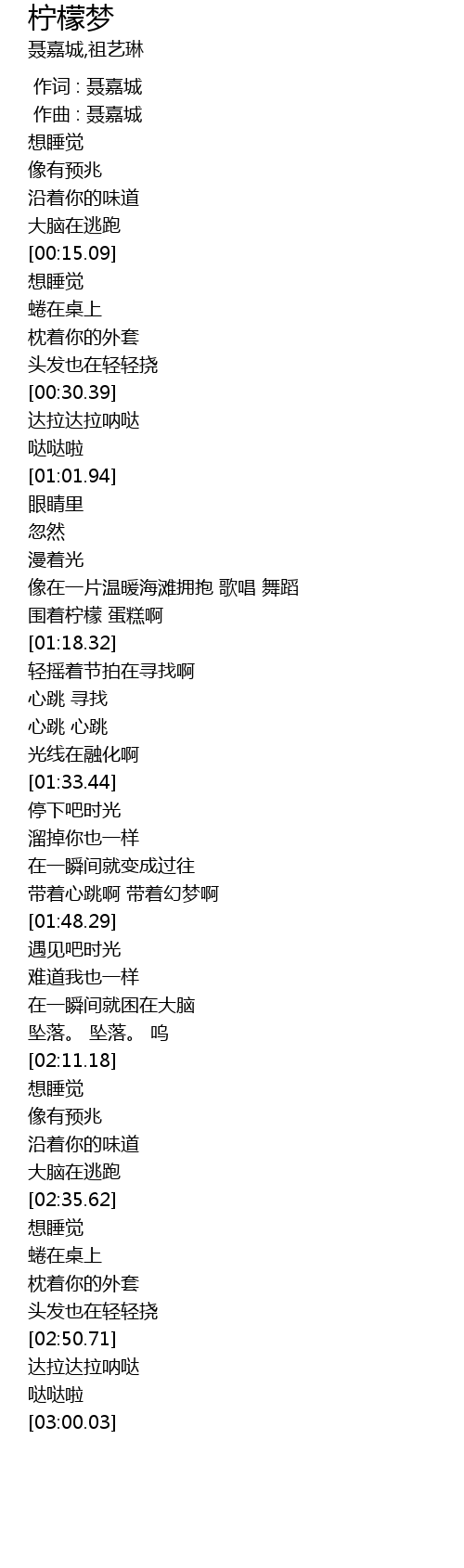 | [00:00.000] | 作词 : 聂嘉城 |