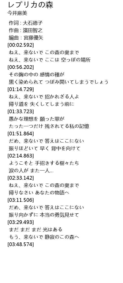 | [03:37.408] | もう、来ないで 静寂のこの森へ |